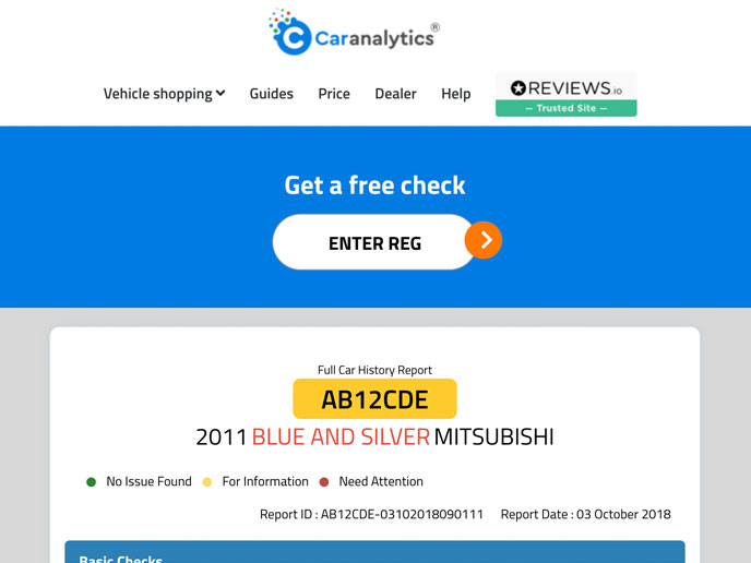 Check out the details for Car Analytics's car data report, including basic and advanced report levels where offered, and a screenshot of a sample report from Car Analytics.