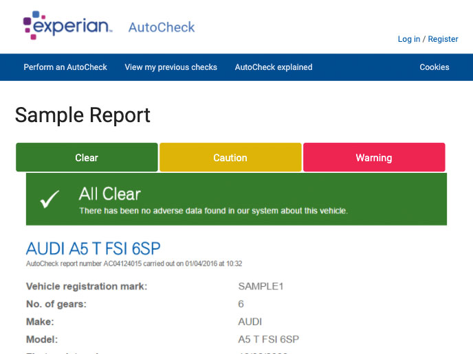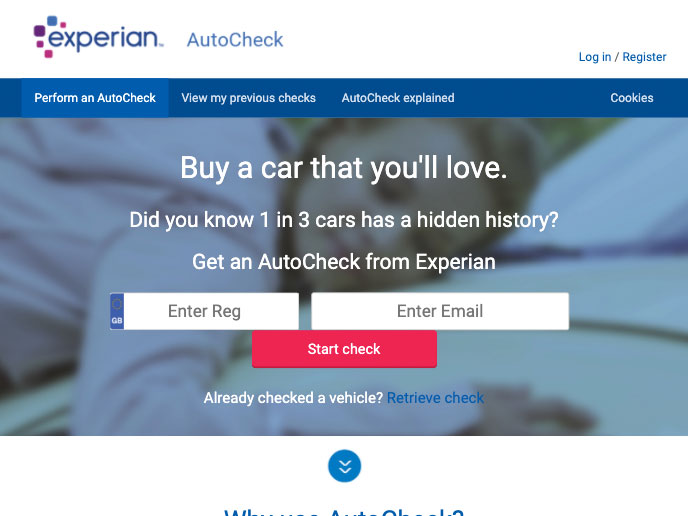 Screenshot Of Experian Autocheck Website