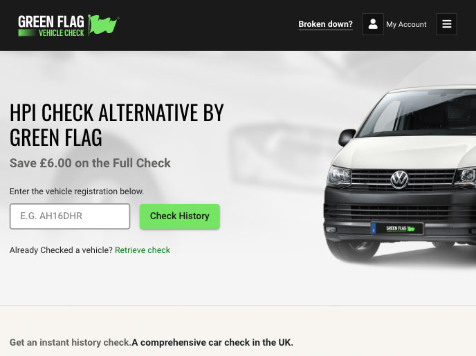 Screenshot Of Green Flag Vehicle Check Website