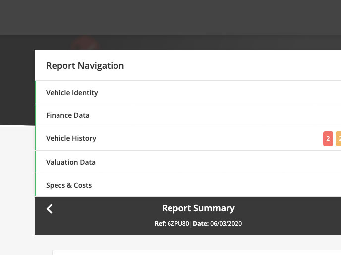 Check out the details for Motor Check's car data report, including basic and advanced report levels where offered, and a screenshot of a sample report from Motor Check.